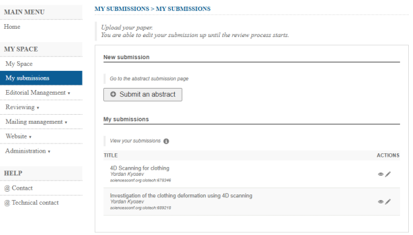 The submission of abstracts looks like here shown