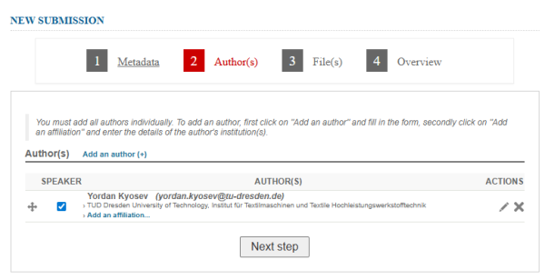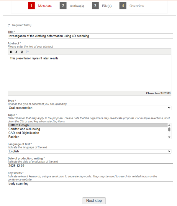Screenshots with the submission process are presented on the end of this page.